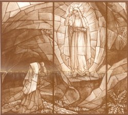 Se abbiamo veramente contemplato il volto di Cristo e ci siamo messi sulla sua barca per “prendere il largo” non possiamo che ispirarci al comandamento nuovo che lui ci ha dato: “Come io vi ho amato, così amatevi anche voi gli uni gli altri” (Gv. 13,34). Dobbiamo saperlo riconoscere in tutti i fratelli ma soprattutto in coloro con i quali egli stesso ha voluto identificarsi: poveri, ammalati, handicappati, abbandonati, soli, stranieri, emarginati e che Maria a Lourdes ci ha insegnato ad amare in modo particolare. La grande vetrata che inaugureremo e alla quale avete generosamente contribuito sia l'espressione del nostro amore verso la Vergine di Lourdes e ci ricordi di mettere in pratica quello che diceva S. Bernadette: “non vivrò un giorno senza amore”. Vi abbraccio tutti e approfitto per augurarvi assieme ai vostri cari un BUON NATALE.